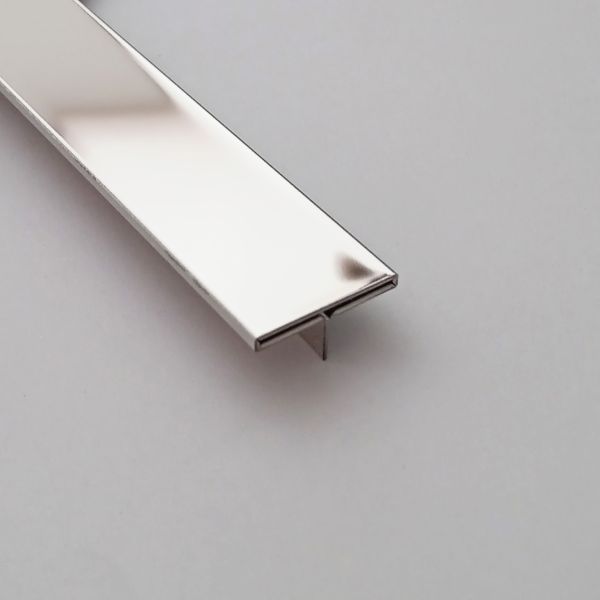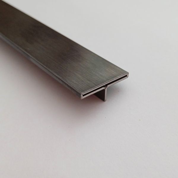 Bagheta despartitoare T din inox se utilizeaza ca trecere fără diferenta de nivel, la delimitarea unor suprafețe divers placate, avand si rolul de a acoperi rostul inestetic dintre două suprafete adiacente din cadrul pardoselii. Se fixează fie simultan cu placarea pardoselii, fie ulterior acesteia, prin crestarea unui rost cu latimea minima de 3mm și adancimea de 10mm.